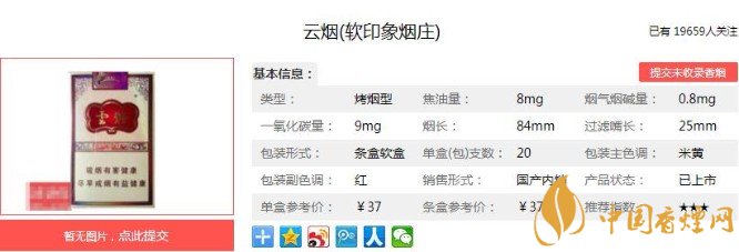 一、云煙(軟印象煙莊)價格