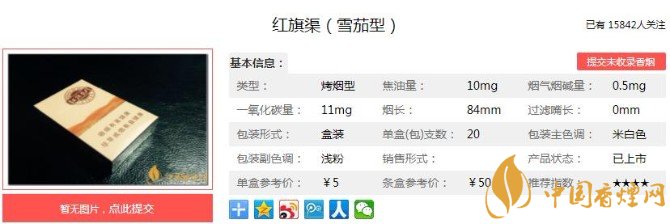 紅旗渠(雪茄型)雖然價格的定價是5元一包,但是在一些只有少量貨源的地區,價格一路上漲,愣是被被炒高價格至60元一包,很多煙民想買都買不到。