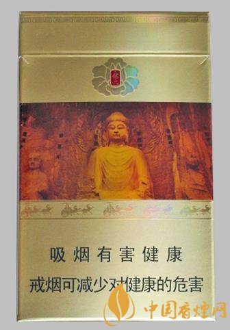 大家都知道洛陽最著名的是牡丹花和龍門石窟,這款香煙將龍門石窟作為背景設計煙盒上面,多少還是有些紀念和代表意義的。彰顯著洛陽有著豐富的人文和歷史價值及背景。其余的地方設計的樣式還是黃金葉的經典包裝,只有在正面和背面的地方加入龍門石窟的背景。