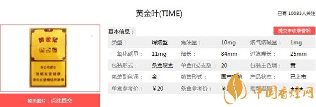 以上便是香煙網小編為大家介紹的關于黃金葉TIME多少錢 黃金葉time時間口感及圖片的相關信息,看完之后大家是不是對于黃金葉(TIME)這款香煙的相關信息更加了解呢。大家還想查詢更多的相關內容歡迎點擊:黃金葉龍門多少錢一包 黃金葉龍門價格及口感分析