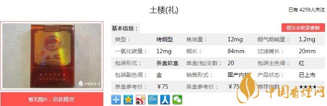 土樓禮這款香煙作為經典之作,已經算是高檔煙的價格了,但是據說已經停產了,比較可惜了。現在市面上流通的這款香煙,也并不是很多。加上現在土樓煙基本上都不研發新品了。土樓(禮)現在售價75元一包的價格,多少大家還是能接受的。