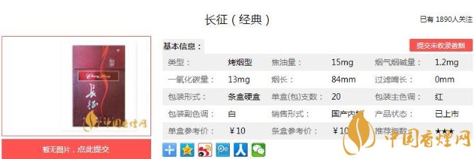以上便是香煙網小編為大家介紹的關于長征香煙價格及圖片 長征經典香煙價格10元一包的相關信息,看完之后大家是不是對于長征(經典)這款香煙的相關信息更加了解呢。大家還想查詢更多的相關內容歡迎點擊:黃果樹長征香煙如何鑒別真假 圖文詳解2018新版