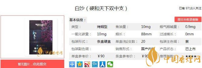 以上便是香煙網(wǎng)小編為大家介紹的關于白沙和天下香煙價格及圖片 白沙硬和天下雙中支90元一包的相關信息,看完之后大家是不是對于白沙(硬和天下雙中支)這款香煙的相關信息更加了解呢。大家還想查詢更多的相關內(nèi)容歡迎點擊:兩次改良終成精品,白沙硬精品三代價格15元一包!