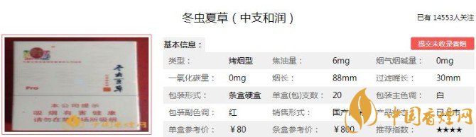 以上便是香煙網小編為大家介紹的關于冬蟲夏草中支和潤多少錢一包 冬蟲夏草中支和潤口感及參數分析的相關信息,看完之后大家是不是對于冬蟲夏草(中支和潤)這款香煙的相關信息更加了解呢。大家還想查詢更多的相關內容歡迎點擊:冬蟲夏草香煙價格表圖(6種) 冬蟲夏草(和潤)香煙細支價格1200/條
