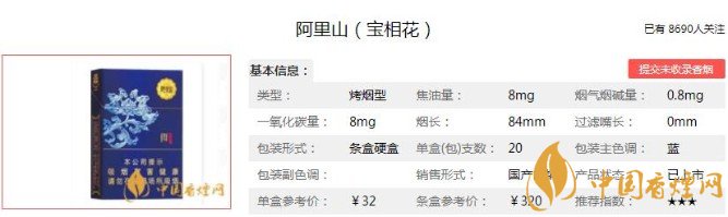 以上便是香煙網小編為大家介紹的關于阿里山寶相花多少錢 阿里山寶相花價格及圖片分析!的相關信息,看完之后大家是不是對于阿里山(寶相花)這款香煙的相關信息更加了解呢。大家還想查詢更多的相關內容歡迎點擊:阿里山軟景泰典藍價格 阿里山軟景泰典藍口感測評