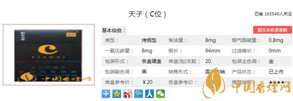 天子C位香煙價格多少 天子C位香煙口感及參數(shù)介紹