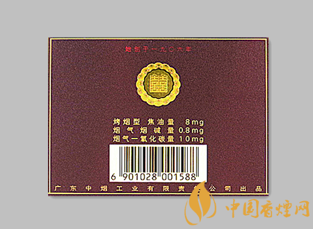 類型 :烤煙型 焦油量 :8mg 煙氣煙堿量 :0.8mg 一氧化碳量 :10mg