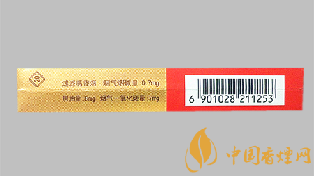 類型 :烤煙型 焦油量 :8mg 煙氣煙堿量 :0.7mg 一氧化碳量 :7mg