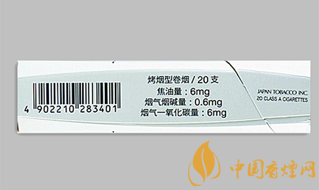 類型 :烤煙型 焦油量 :6mg 煙氣煙堿量 :0.6mg 一氧化碳量 :6mg