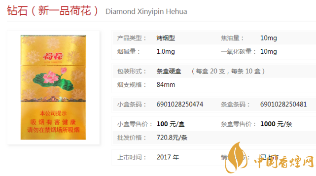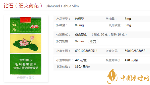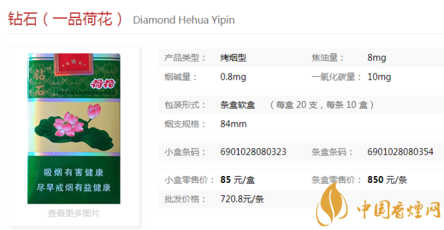 鉆石煙價格表圖 鉆石荷花口感分析