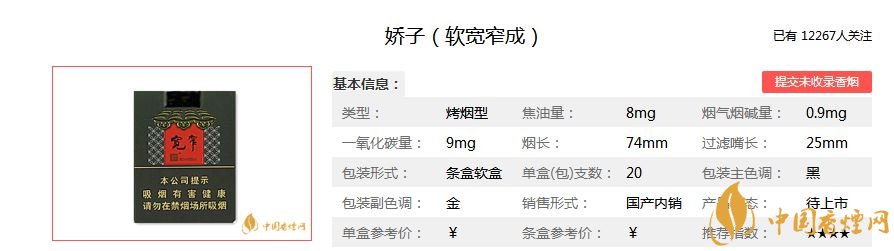 以上是香煙網小編為大家介紹的嬌子(軟寬窄成)的價格參數以及煙民們的點評,希望為大家提供幫助。想了解更多香煙資訊,請關注香煙網!