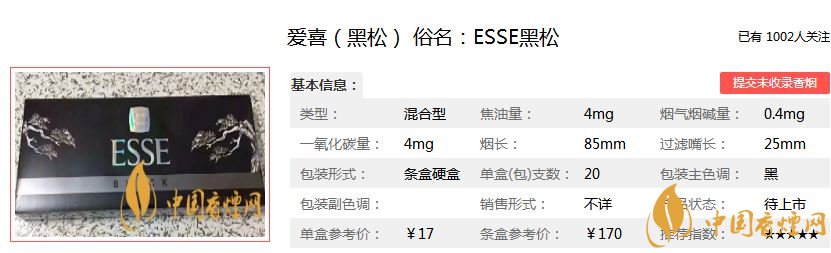 以上是香煙網小編整理介紹的愛喜黑松香煙的價格以及香煙產品參數,希望為煙民們提供幫助。小編要在這里提醒大家,這款外煙目前市面上供應較少,大家要通過正規渠道購買哦!