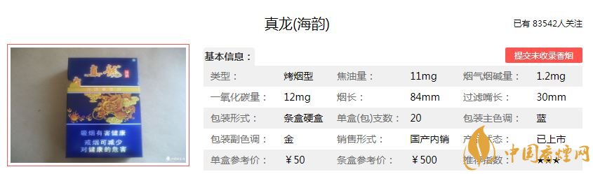 今天為大家介紹一款真龍海韻香煙,這款香煙被稱為“南海龍王”。之所以這樣叫,是因為這款香煙的包裝設計非常大氣,以龍的圖騰為主。那么這款南海龍王香煙多少錢一包?真龍海韻好抽嗎?下面為大家介紹一下真龍海韻的價格參數以及抽過的煙民對這款南海龍王香煙的評價。
