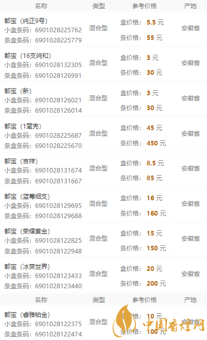 2025都寶香煙價格表圖