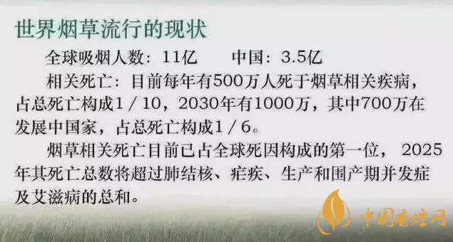 我國是世界上煙草生產和消費最大的國家,吸煙率在38%以上。有資料統計,世界上的吸煙人數正在下降,而與此同時,中國的煙民隊伍卻在不斷擴大:我國現有煙民3.5億,比美國的人口總數還多。
