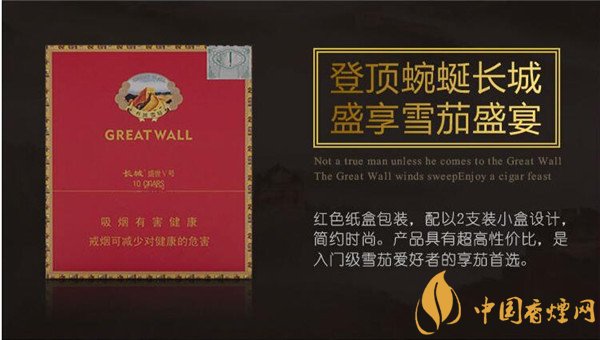 長城雪茄煙盛世5號包裝非常的亮眼,主打色為中國紅和傳統的帝王黃色相結合,整體看上去非常的喜慶,口味是最經典的雪茄本香,這款長城雪茄煙在裝配上進行了大改革。長城雪茄煙(盛世5號)多少錢,接下來香煙網小編將為大家介紹長城雪茄煙價格表和圖片。