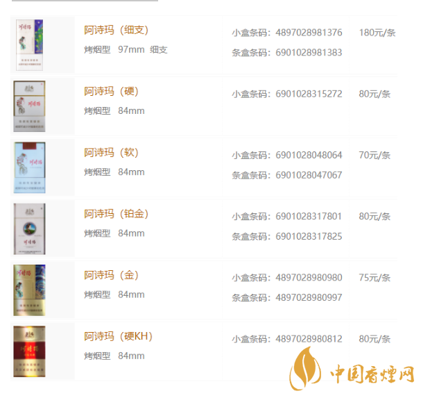 以上就是香煙網小編為您提供的關于2020年阿詩瑪香煙價格表圖的相關信息,更多詳情資訊請點擊香煙網了解有關信息