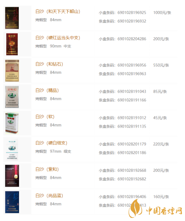 白沙香煙多少錢一包 2020白沙香煙價格表圖大全一覽