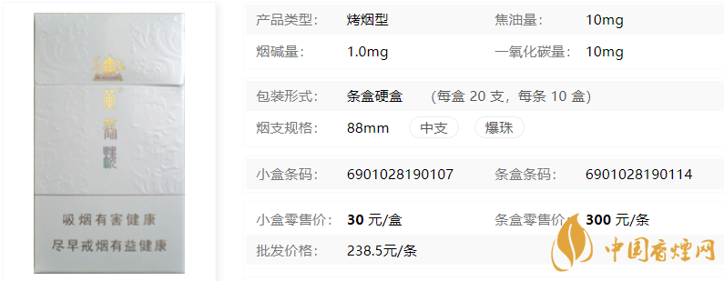 在了解了2020黃鶴樓奇景多少錢一包之后,為了大家能更詳見的了解此煙,小編特意將黃鶴樓香煙核心參數(shù)進(jìn)行了整理,以便于對它進(jìn)行更深入的了解。