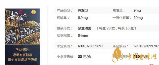 類型 :烤煙型 焦油量 :8mg 煙氣煙堿量 :0.8mg 一氧化碳量 :8mg