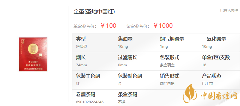 金圣圣地中國(guó)紅多少錢一包 金圣圣地中國(guó)紅16支裝多少錢一包