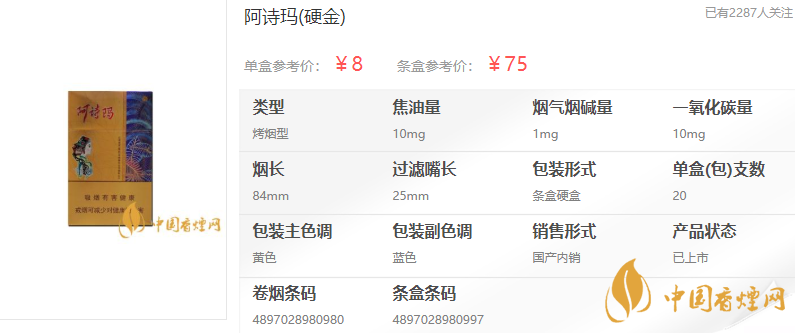 阿詩瑪硬金多少錢一盒 阿詩瑪硬金香煙價格表