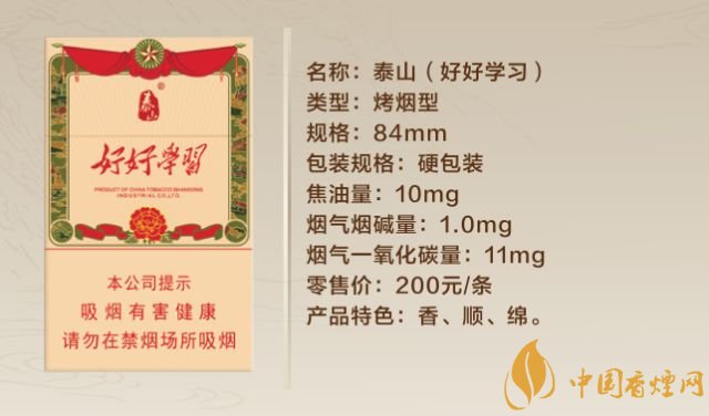 泰山的好好學(xué)習(xí)和白沙的天天向上。激勵(lì)著新一代的年輕人 :白沙出了種煙叫天天向上,泰山出了種煙叫好好學(xué)習(xí),泰山牌好好學(xué)習(xí)的香煙,我們是祖國(guó)的兒女,我們一定好好學(xué)習(xí),報(bào)效祖國(guó)……泰山煙新品多少錢?泰山好好學(xué)習(xí)20元包。