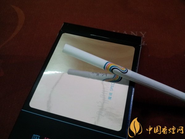 阿里山魔鏡6mg以黑色為基調,整體外觀炫彩而時尚。煙盒魔鏡的效果真的很好,可以清淅的照出影像來,煙支的設計也很有個性,煙支通體純白,白到卷煙紙沒有任何的紋路。過濾嘴端設有五色彩帶一樣絲帶設計,非常的漂亮。口感以煙草本香為主,余味干凈舒適,略回甜,令品吸者非常享受。
