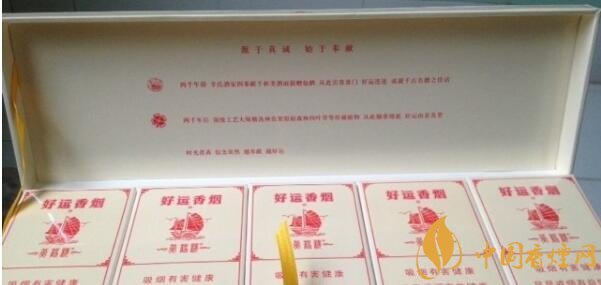 在黃鶴樓香煙大全及價(jià)格中,好運(yùn)有別于樓樓其他品系,凸顯簡(jiǎn)單、樸實(shí),沒(méi)有以前黃鶴樓香煙的那種花里胡哨的感覺(jué)。除了黃鶴樓和好運(yùn)的品牌標(biāo)識(shí)之外,正反面都印有紅色帆船,和“一帆風(fēng)順”的字樣。