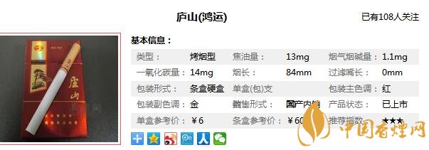 廬山香煙參數(shù)信息