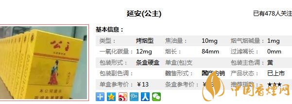 延安公主香煙硬黃多少錢一包 延安公主香煙價格13元/包