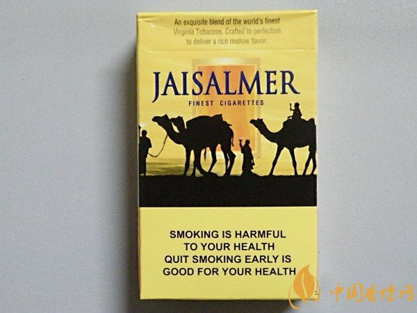 賈沙梅爾香煙是印度的著名卷煙品牌,它有著類似美國駱駝的駱駝圖標,它是印度當地極有特色的一款香煙,深受印度煙民的喜愛和推崇,據了解人們對它的喜愛,如同國人對黃鶴樓香煙一樣。這款印度jaisalmer香煙多少錢一包?香煙網小編將對中免JAISALMER賈沙梅爾香煙價格進行介紹。