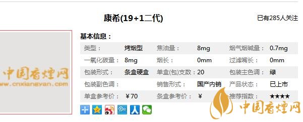 康希香煙參數信息