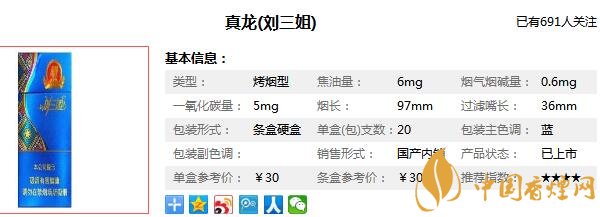 真龍劉三姐香煙參數信息