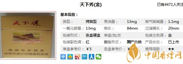 天下秀香煙參數信息