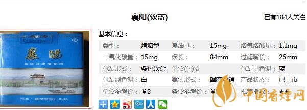 襄陽牌香煙多少錢一包 襄陽牌香煙價格2元/包