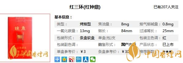 紅鐘鼎香煙參數信息