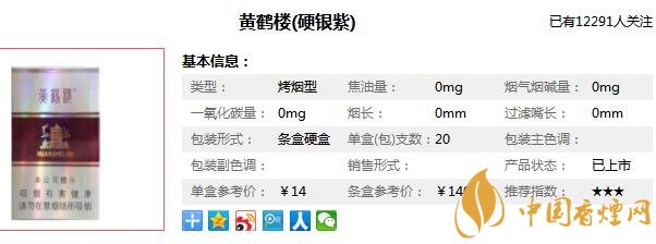 黃鶴樓銀紫多少錢一包 黃鶴樓硬銀紫圖片價格