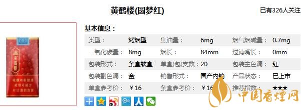 這款黃鶴樓圓夢紅香煙,在黃鶴樓系列中屬于低檔香煙,不過這款香煙給人的感覺非常新穎,水立方的外表,給人一種很特別的感覺,那么在介紹黃鶴樓圓夢紅價格圖片之前,先來看一看這款黃鶴樓圓夢紅多少錢一包吧,這款香煙的價格為16元/包。