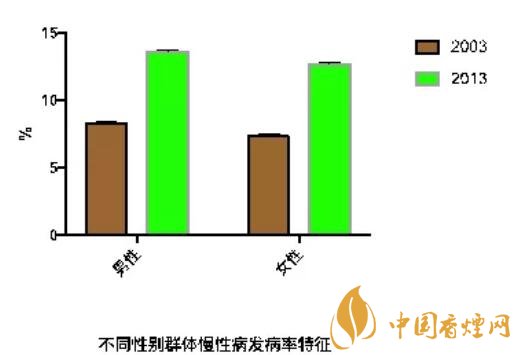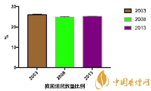 研究結果顯示,2003年,2008年以及2013年我國的煙民比例分別為26.0%,24.9%,25.2%,始終高居不下。2003年,男性煙民的數量相對較高(48.4%)。女性群體的煙民比例則相對較低(3.1%)。