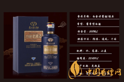 不僅僅是酒好,53度白金老醬酒藍鉆石,包裝更是高端大氣,烤瓷瓶身,質感細膩,燙金文字,精細工藝。匠師手作,盒型精美,精美禮盒,大氣尊貴。。好禮伴手提,予之我心意。每箱配送3個手提袋,讓您商務贈送有面子,宴請貴賓上檔次,自飲尊享更健康。 白金老醬酒藍鉆石,是白金酒打造的一款高端白酒,市場零售價格稍高。