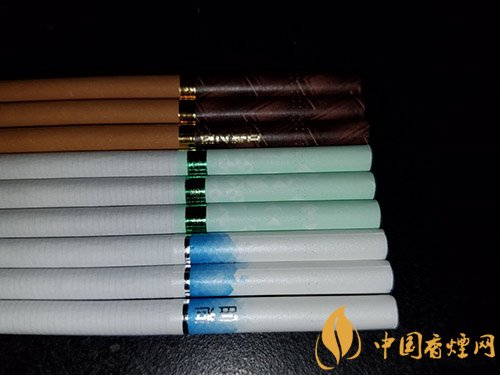 這三款細支煙的參數完全相同,具體參數:一盒20支,煙長97mm,焦油量8mg,煙堿量0.6mg,一氧化碳量6mg。