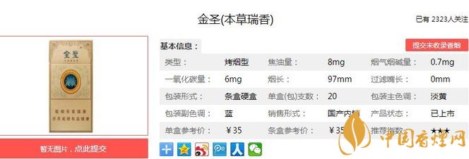 瑞香細支的煙支修長,和主流細支煙一樣,煙嘴口徑5mm。瑞香細支主原料以世界“黃金煙田”津巴布韋煙葉和云南煙葉為主,輔以江西生態種植區金圣基地煙葉,并在煙葉中融入經密練的天然名貴植物。經香煙網小編市場調查金圣本草瑞香售價為35元/包。