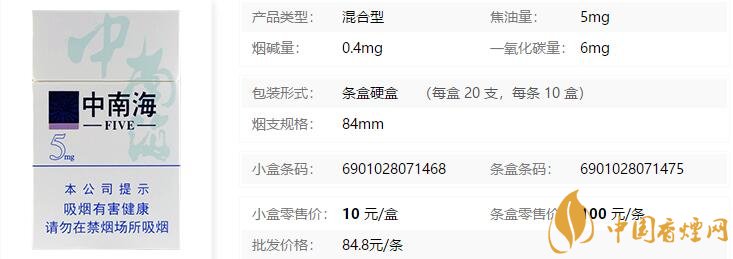 中南海(5mg)煙支長(zhǎng):84mm,混合型,包裝形式:條盒硬盒(每盒 20 支,每條 10 盒)。5mg低自由基中南海香煙采用北京卷煙廠獨(dú)創(chuàng)的新型生物濾嘴技術(shù)、低自由基技術(shù),在降低產(chǎn)品焦油含量的同時(shí),使煙氣中導(dǎo)致疾病與衰老的烷基、烷氧自由基含量有效降低。下面我們一起來(lái)看中南海(5mg)的參數(shù)信息:焦油量:5mg 煙堿量:0.4mg 一氧化碳量:6mg