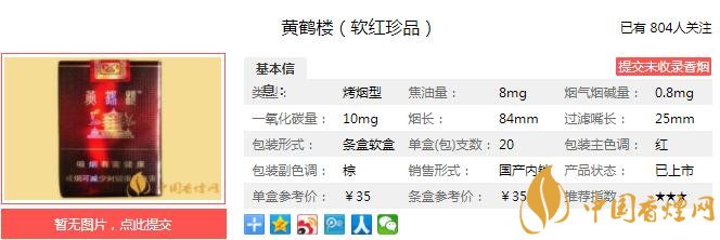 二、黃鶴樓軟紅珍品香煙參數(shù)