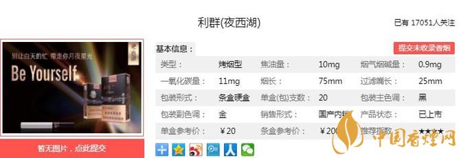 “利群(夜西湖)”雖然外觀與常規卷煙相似,但絕不是簡單將常規煙支“剪短”,在研發既克服了因煙支縮短帶來的煙氣粗爆感和口腔灼燒感,又保持了“利群”清淡、醇和、甜潤的風格特色,一上市就得到了消費者的認可和喜愛,市場反應良好,需求量日益增大。經香煙網小編市場調查利群夜西湖售價為20元/包。