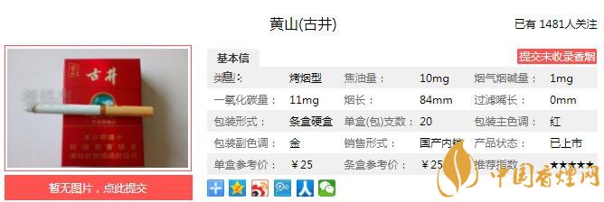 黃山古井煙多少錢一盒 黃山古井口感及參數(shù)介紹