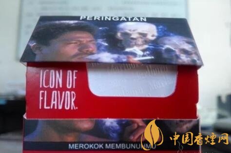煙盒內襯骨架上印制的“ICON OF FLAVOR”,直譯為‘風味標志",應該指的是印尼硬紅萬那濃郁的混合氣味。錫紙上的Marlboro字體效果,有如浮雕般凸起。
