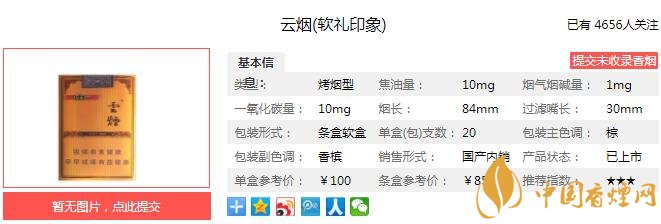 一、云煙軟禮印象香煙價格