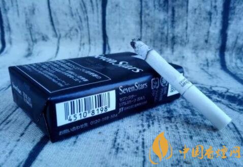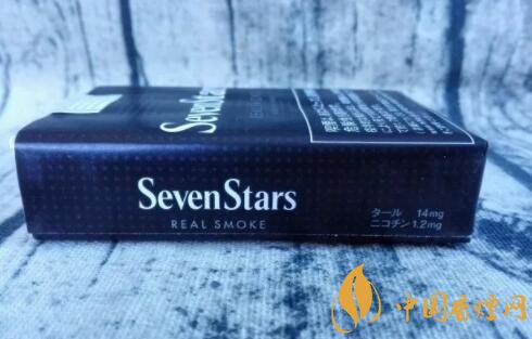 煙盒的正反及左右兩側均以白色的小五角星為圖案,橫平豎直地排列開來。與其它Seven Stars版本一樣,位于煙盒正反兩面中間都有阿拉伯數字“7”的標識。REAL SMOKE,直譯成中文是“真煙,真正的香煙”之意。A BOLD FULL FLAVOR,中文意思是“煙味十足”。綜合意思,是說此款日稅黑七星的品質之高。
